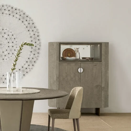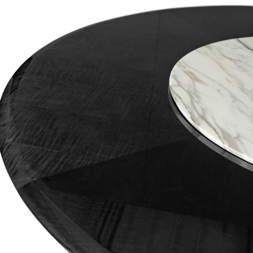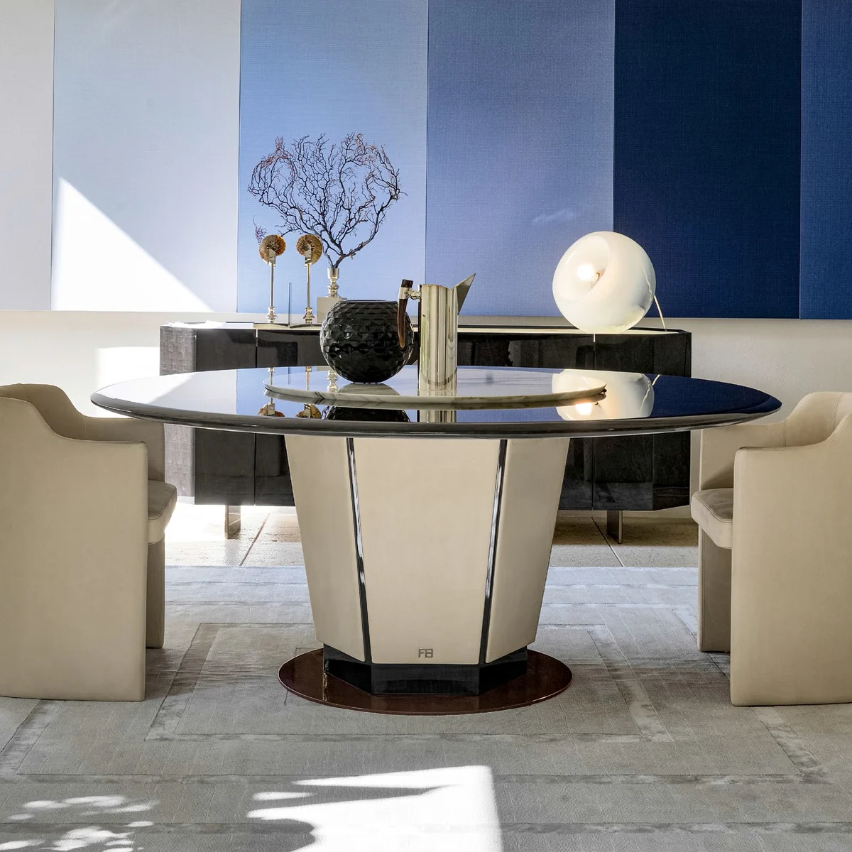 Bàn ăn Crystal là biểu tượng của vẻ đẹp hiện đại kết hợp cùng nghệ thuật chế tác tinh xảo. Mặt bàn tròn được hoàn thiện với lớp sơn Pantera bóng gương đầy cuốn hút, phản chiếu ánh sáng mềm mại, mang đến cảm giác sang trọng và thanh lịch cho không gian.