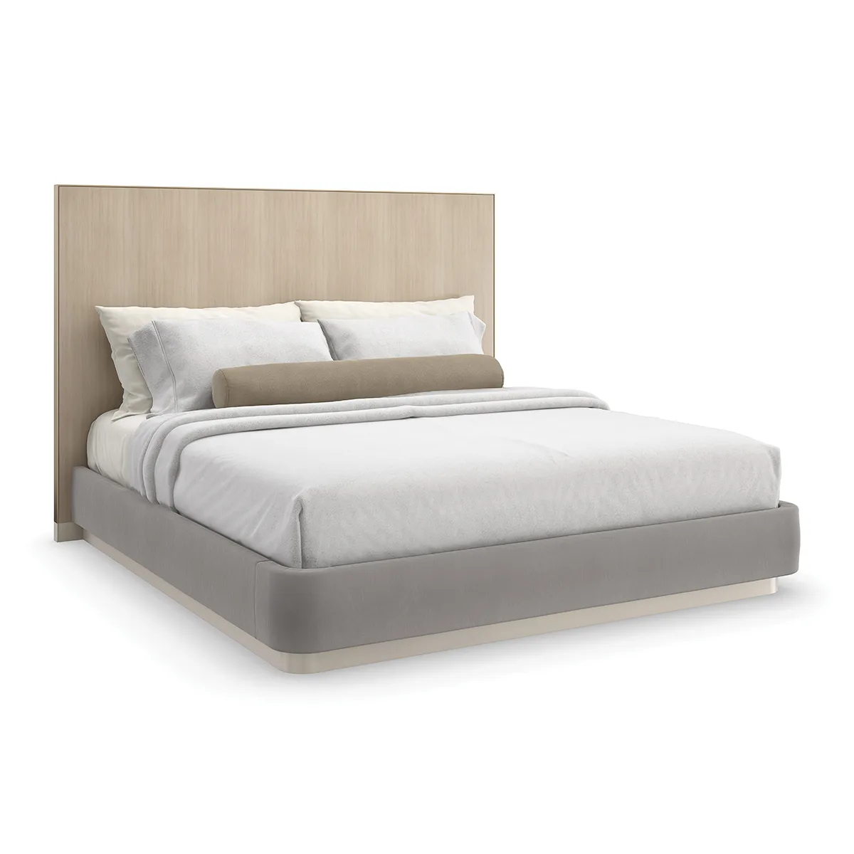 The King Dream Chaser Bed is the perfect combination of luxurious materials and streamlined design, bringing a beauty that balances splendor and sophistication. With a Dry Martini finish, the bed makes a strong impression with its Parsons-style headboard crafted from rare Koto wood veneer and edged with a luxurious Brushed Gold metal trim.