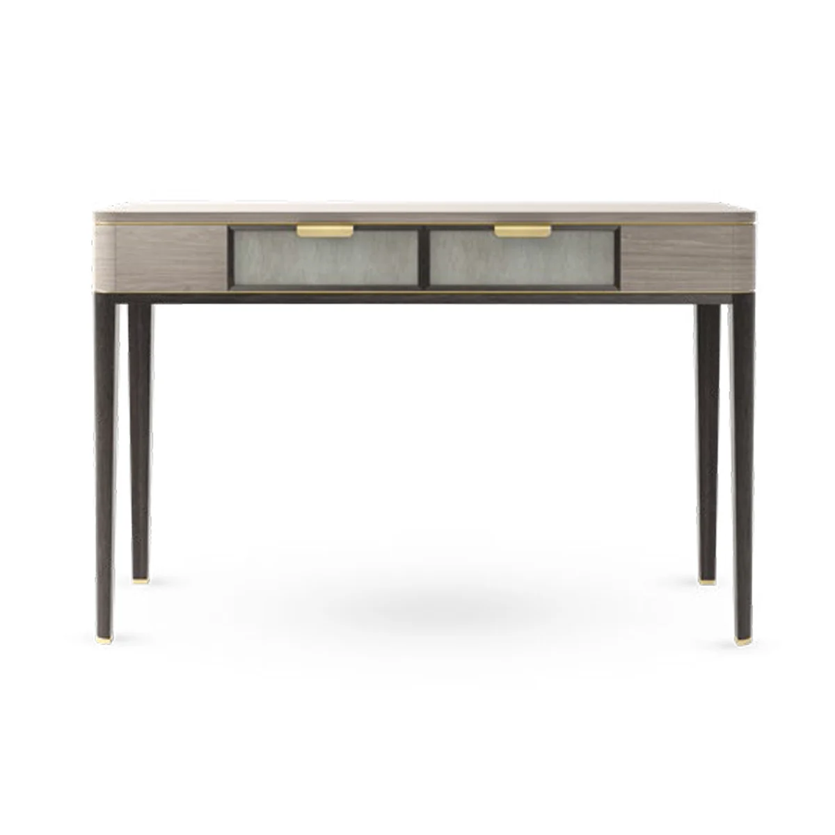 The Mandalay Dressing Table sets a new standard in contemporary interior design, harmoniously combining high-quality materials and exquisite craftsmanship. The tabletop and cabinet body are covered with natural wood veneer featuring a High Gloss finish, creating luxurious depth and a captivating reflective surface.