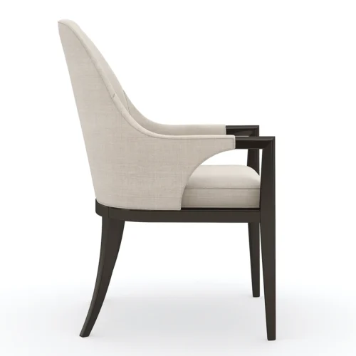 With curves that embrace the back and armrests, the Natural Choice Arm Chair delivers comfort, harmonizing simplicity with subtle elegance. The exquisite piping detail accentuates the neat silhouette, which is supported by an exposed wood frame and tapered legs finished in a luxurious dark chocolate hue.