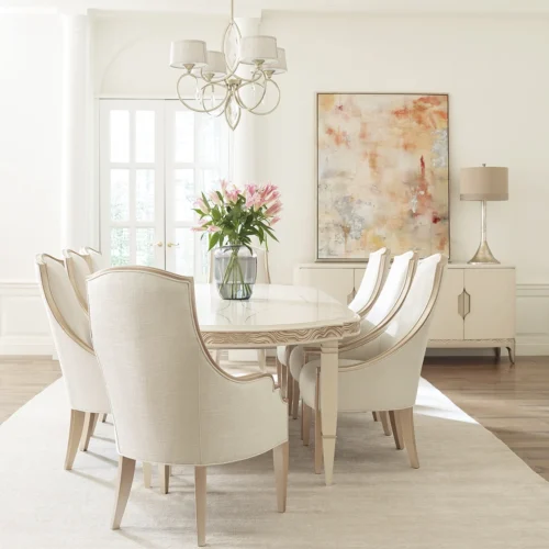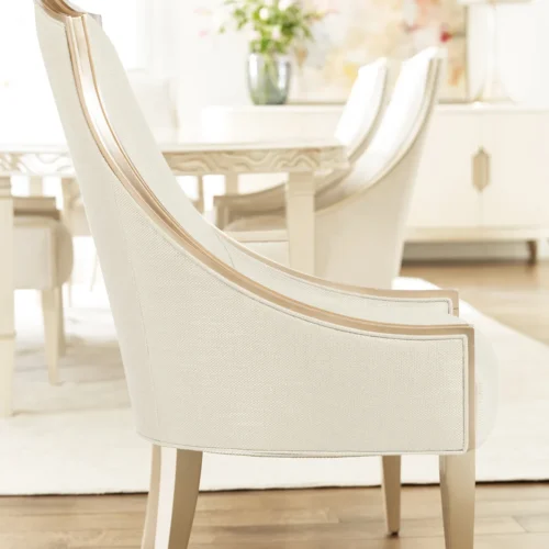 Ghế ăn Adela là lựa chọn hoàn hảo để hoàn thiện những không gian phòng ăn sang trọng. Với đường nét thanh thoát và dáng vẻ uyển chuyển, chiếc ghế dễ dàng phối hợp cùng bàn gỗ tối màu, sáng màu hoặc bàn kính hiện đại. Khung ghế phủ ánh kim loại Blush Taupe tinh tế, kết hợp cùng lớp vải boucle màu kem cao cấp, mang đến sự cân bằng hài hòa giữa thẩm mỹ và tiện nghi.