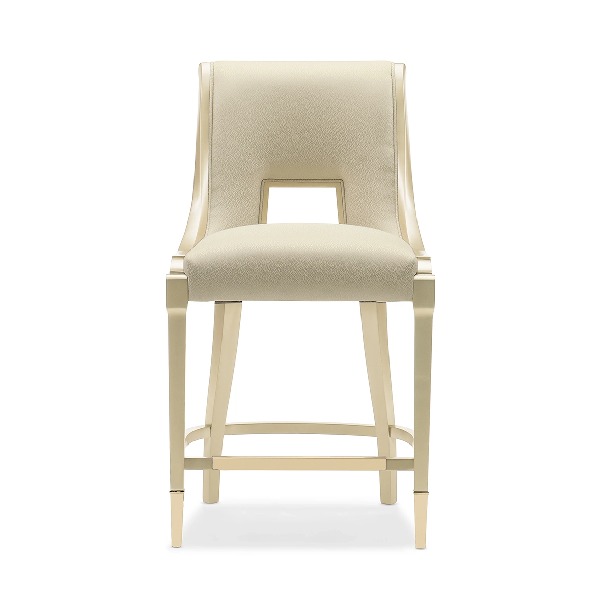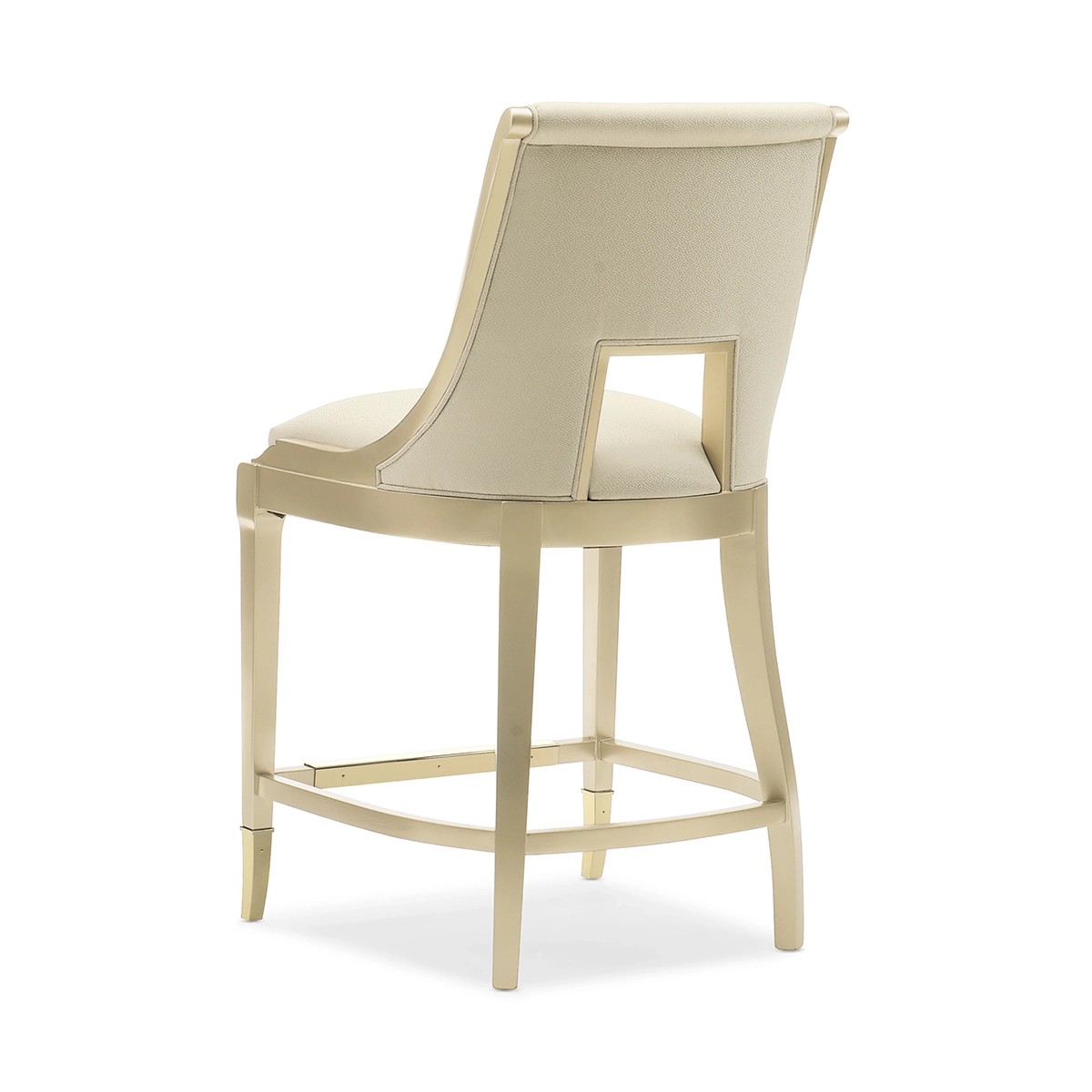 Điểm nhấn độc đáo nằm ở chi tiết cắt khoét trên mặt ghế được viền bằng lớp sơn Gold Bullion Paint nổi bật, tạo nên sự khác biệt tinh tế. Các chân ghế thon gọn, vững chắc, kết thúc bằng đầu bọc kim loại màu Vàng thầm thì (Whisper of Gold) và được nối với nhau bằng thanh giằng cùng màu. Với thiết kế sạch sẽ và sang trọng, In Good Taste dễ dàng nâng tầm tính thẩm mỹ của mọi đảo bếp và quầy bar hiện đại.