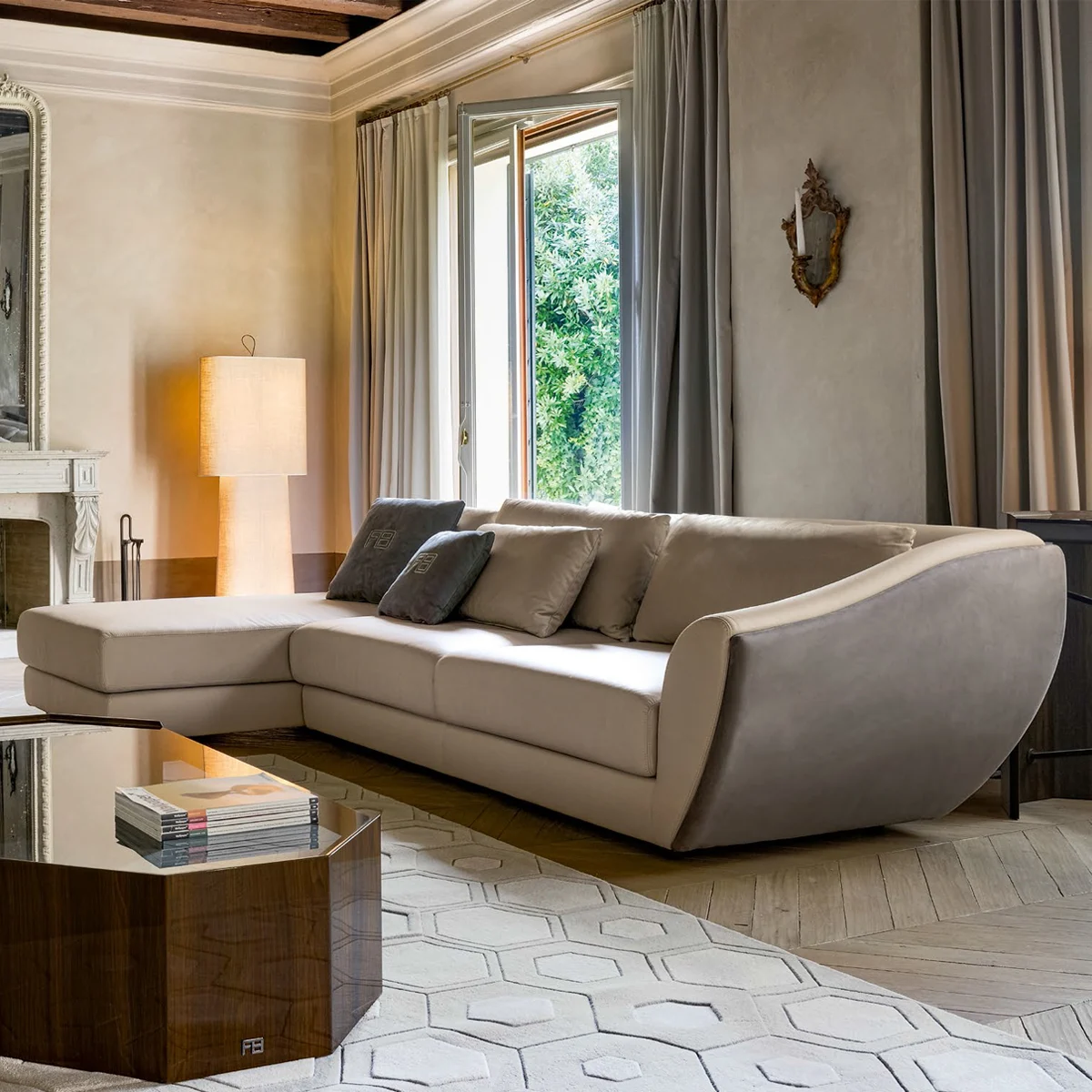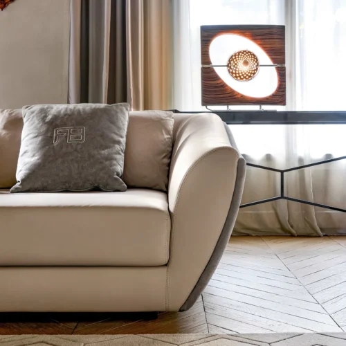 Nhờ thiết kế modular (ghép rời), Aria có thể dễ dàng tùy chỉnh để phù hợp với mọi không gian – từ phòng khách rộng mở đến góc thư giãn riêng tư. Những chiếc gối tùy chọn bọc da đồng màu giúp hoàn thiện tổng thể một cách tinh tế, mang đến vẻ đẹp cân đối và cảm giác ấm áp.