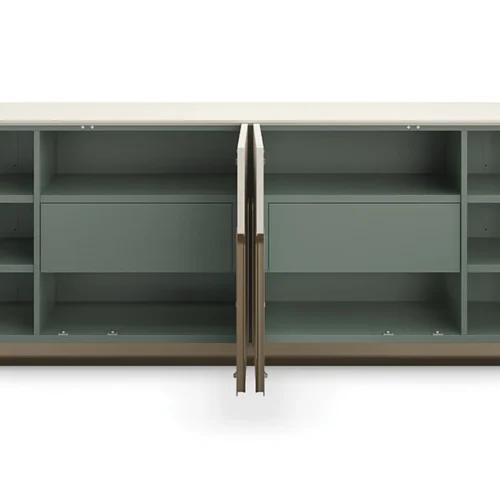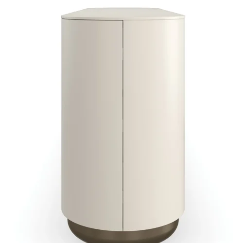 Với thiết kế lấy cảm hứng từ những vòm cong mềm mại, bộ tay nắm kim loại Lucent Bronze gợi nhớ đến kiến trúc tường trắng đặc trưng của vùng ven biển Morocco. Tủ được đặt trên chân đế kim loại vững chắc, kết hợp giữa đường nét gọn gàng và các cạnh bo tròn uyển chuyển, mang lại vẻ đẹp linh hoạt phù hợp cho cả phòng ăn, phòng giải trí hay văn phòng tại gia.