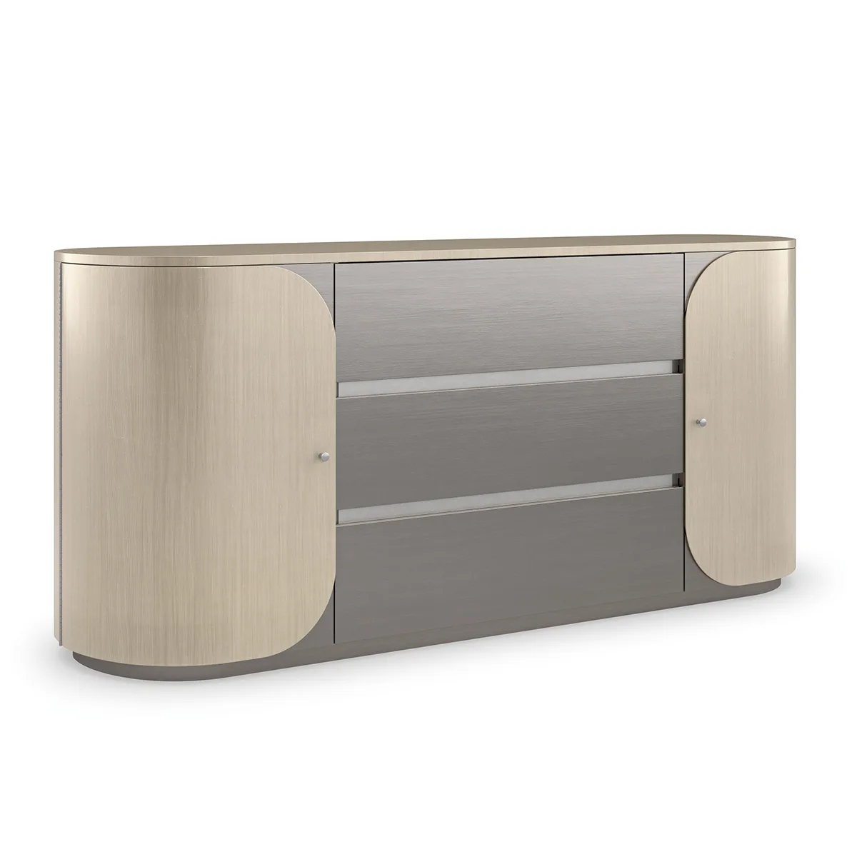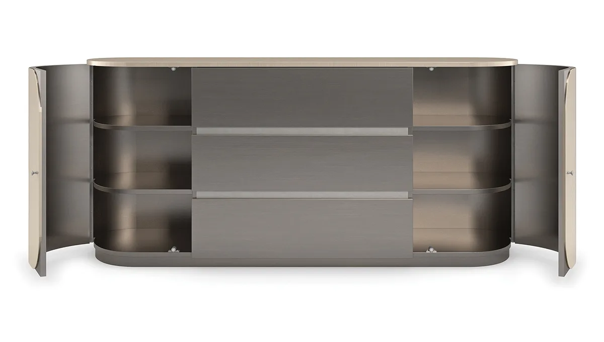 Với những đường nét gọn gàng kết hợp cùng đường cong uyển chuyển, cân bằng tinh tế trong bảng màu đơn sắc, Tủ ngăn kéo đôi Da Vita mang đến vẻ đẹp hiện đại đậm chất Ý cho không gian phòng ngủ. Thiết kế hình oval độc đáo, các ngăn kéo phủ sơn Smoked Stainless Steel tạo điểm nhấn tinh tế đối lập với cánh cửa bo tròn bằng veneer hoàn thiện màu Thunder, làm nổi bật vân gỗ tự nhiên.