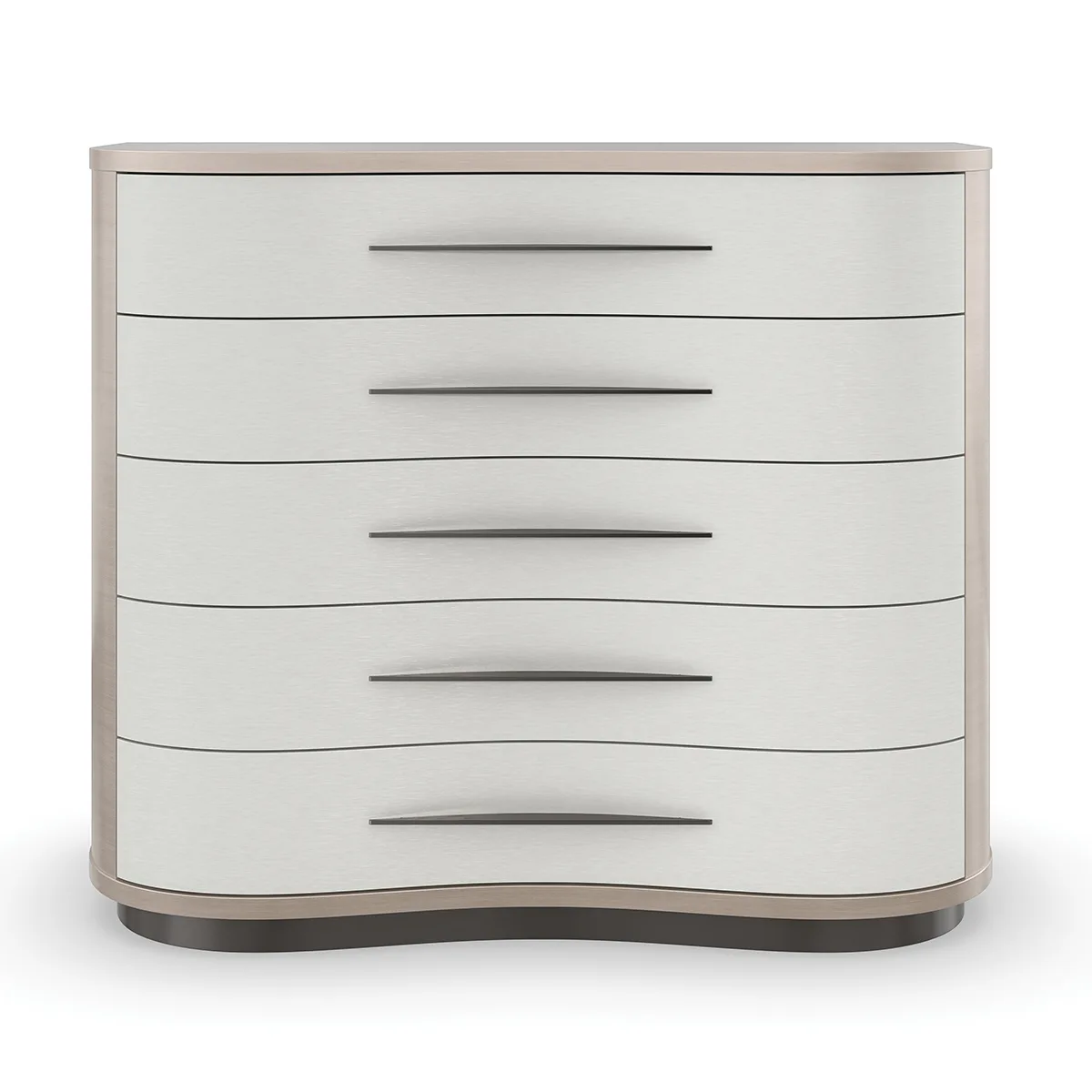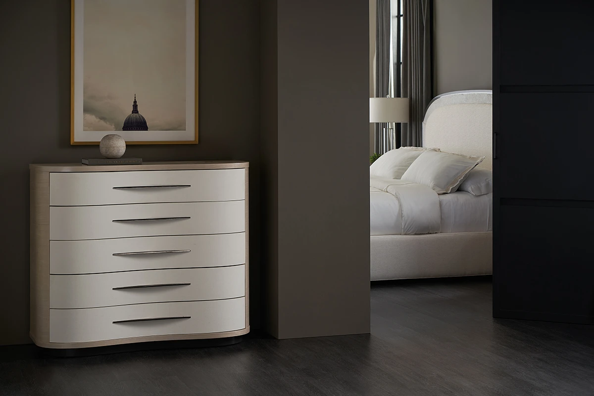 Năm ngăn kéo đóng êm mang đến không gian lưu trữ gọn gàng, với tay nắm ngang hiện đại và nội thất sơn hoàn thiện đầy bất ngờ. Đặc biệt, ngăn kéo trên cùng được trang bị khay tháo rời tiện lợi, giúp sắp xếp gọn gàng trang sức, phụ kiện hay khuy măng sét. Tủ ngăn kéo Meandrous là lựa chọn hoàn hảo cho không gian phòng ngủ, nơi nghệ thuật thiết kế giao hòa cùng sự tinh tế trong từng chi tiết.