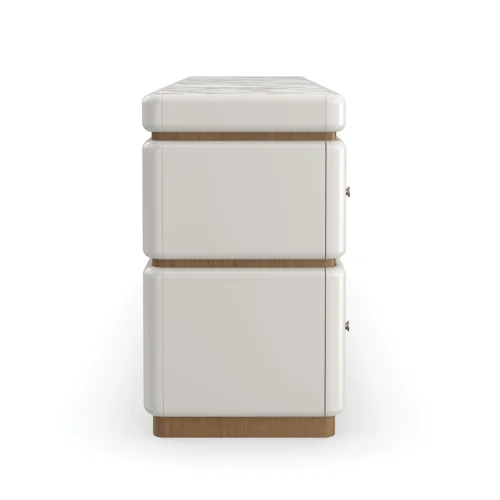 Gợi nhớ vẻ đẹp vượt thời gian của những biệt thự ven biển Địa Trung Hải, Tủ ngăn kéo Milos mang phong cách hiện đại với đường cong nhẹ nhàng và các cạnh được bo tròn tinh tế. Thiết kế tối giản với những khối hình xếp lớp, viền gỗ hoàn thiện màu Toasted Pecan, nổi bật cùng mặt đá Calcutta Oro vừa sang trọng vừa bền vững.