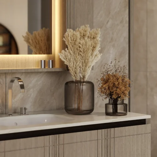 Tủ vanity Coventry gây ấn tượng với thiết kế thanh thoát, các chi tiết hình khối vuông vức, cùng mặt bàn rộng rãi và hệ thống bốn cánh tủ, mang lại không gian lưu trữ ngăn nắp và dễ tiếp cận.